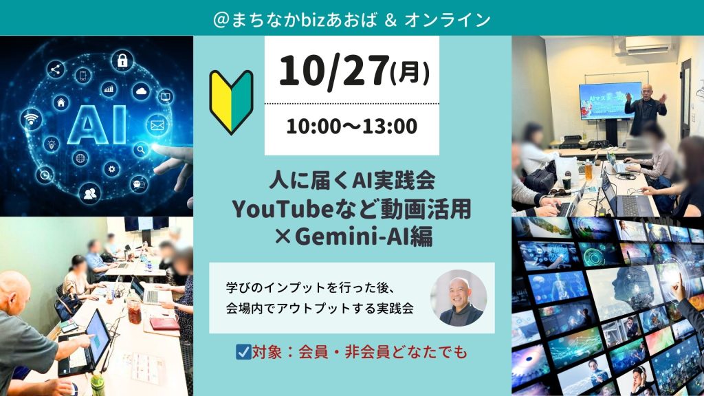 【10月27日(月)】人に届くAI実践会 ~YouTubeなど動画活用×Gemini-AI編~