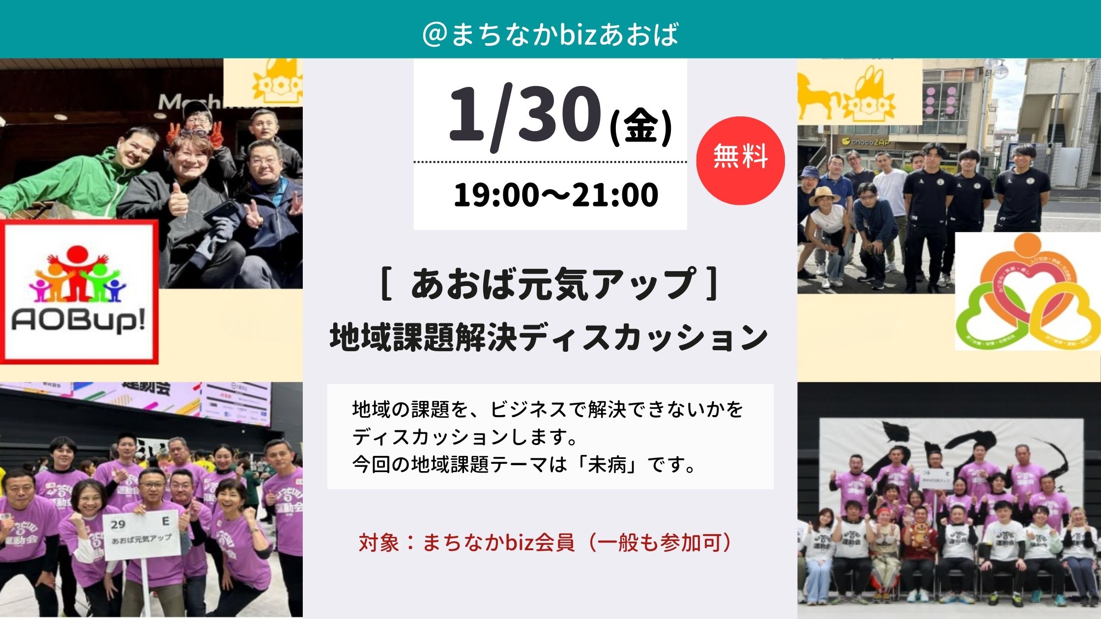 あおば元気アップ/AOBup!(アオバップ)は まちなかbiz あおばの地域課題ディスカッションから2016年に結成し『未病』をテーマに活動をスタートした団体です。