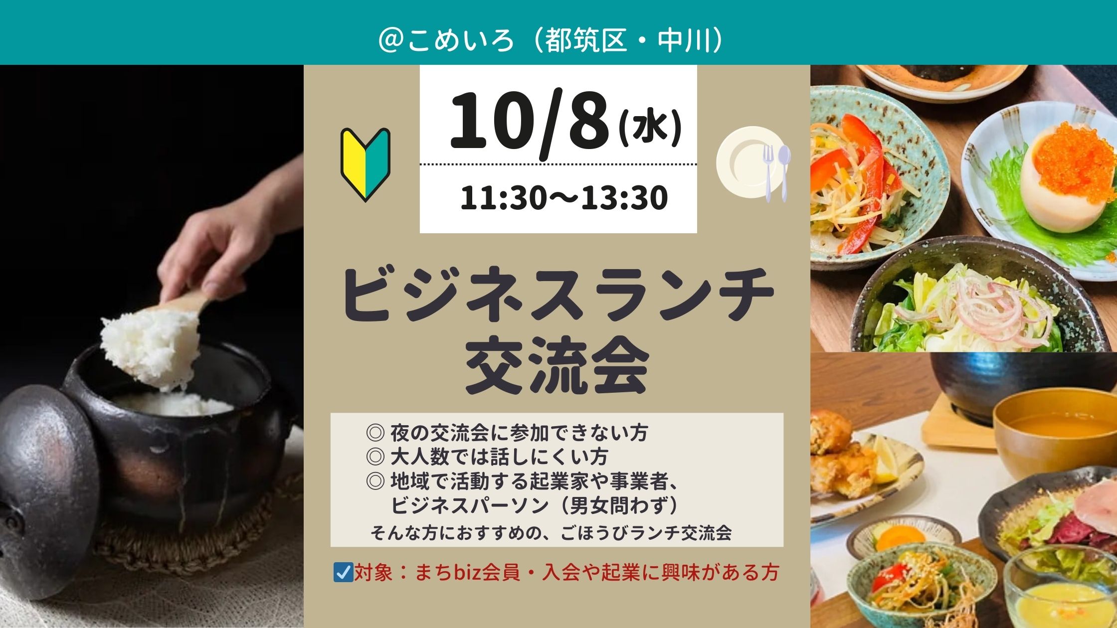 中川駅徒歩4分の「こめいろ」で、ビジネスランチ交流会を開催します。