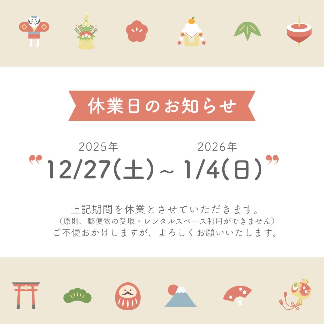 年末年始12/26(土)~1/4(日)を休業とさせていただきます。